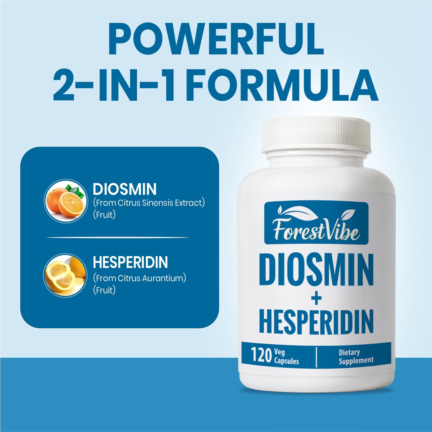 Elevate your routine with ForestVibe Diosmin Hesperidin Complex, featuring 120 vegan capsules with a citrus-derived flavonoid blend from orange extracts. Produced in a GMP-certified facility and third-party lab tested for purity and quality.