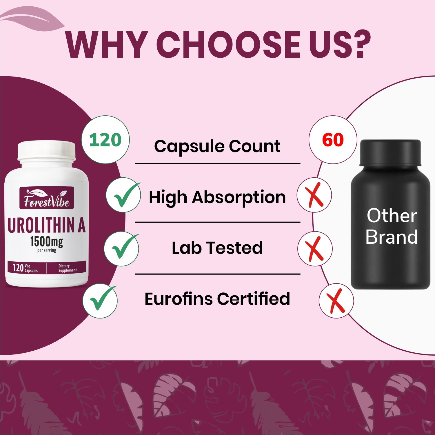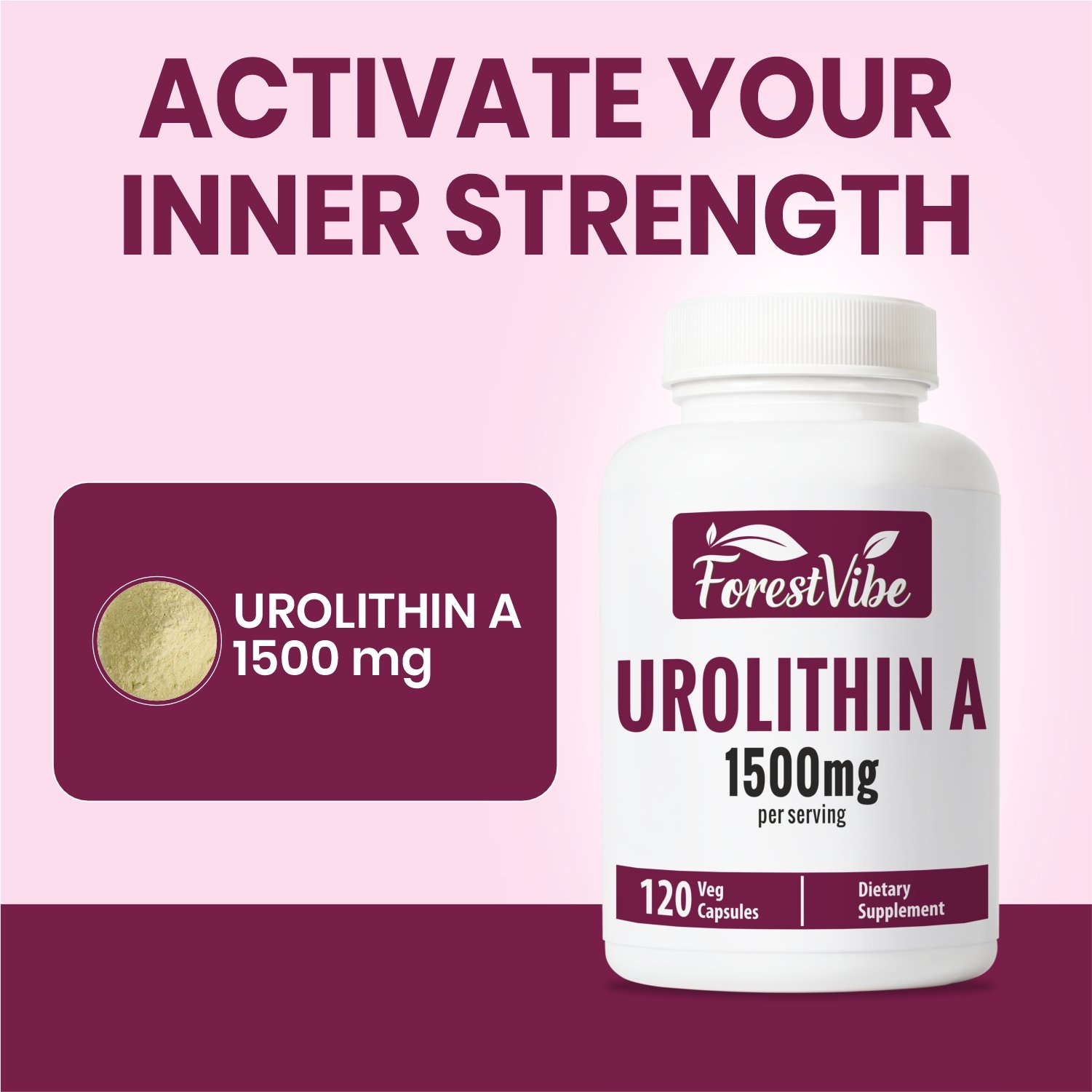Discover ForestVibe Urolithin A, featuring 120 vegan capsules with high-potency Urolithin A compound. Produced in a GMP-certified facility and third-party lab tested to ensure purity, quality, and consistency.
